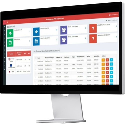 mChanger.sg POS is a simple, user-friendly POS system designed specifically for currency exchange businesses and retail counters. It’s built to handle day-to-day sales, billing, and customer management with ease—even for users with basic computer skills. Unlike generic POS systems in the market, mChanger.sg POS is tailored for money changers, offering real-time integration with exchange rate updates, customer verification, and transaction logging. This smart solution combines sales, inventory, customer data, and compliance tracking in one seamless platform. mChanger.sg POS is a next-generation, cloud-based POS system that brings speed, simplicity, and control to your front desk—perfect for both single outlets and multi-branch operations.